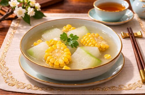 每週一素:冬瓜玉米湯 2026年3月第1週 簡介:冬瓜玉米湯是一道清淡甘甜、清潤養生的傳統素食湯品。以清爽的冬瓜和自然甜香的玉米為主要食材,通過簡單的慢火燉煮,使湯水逐漸吸收食材的天然清香。冬瓜在燉煮過程中變得柔軟細膩,...